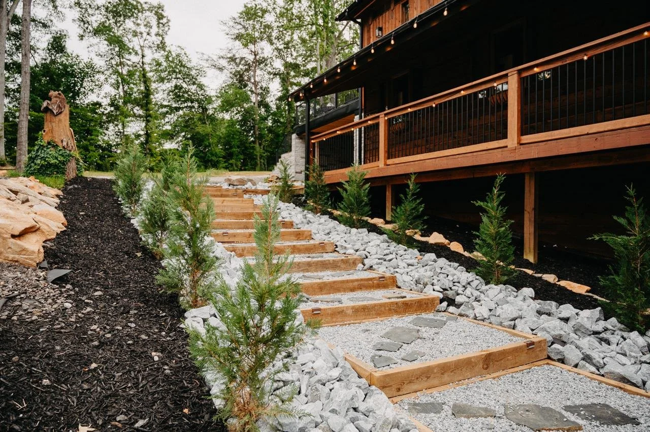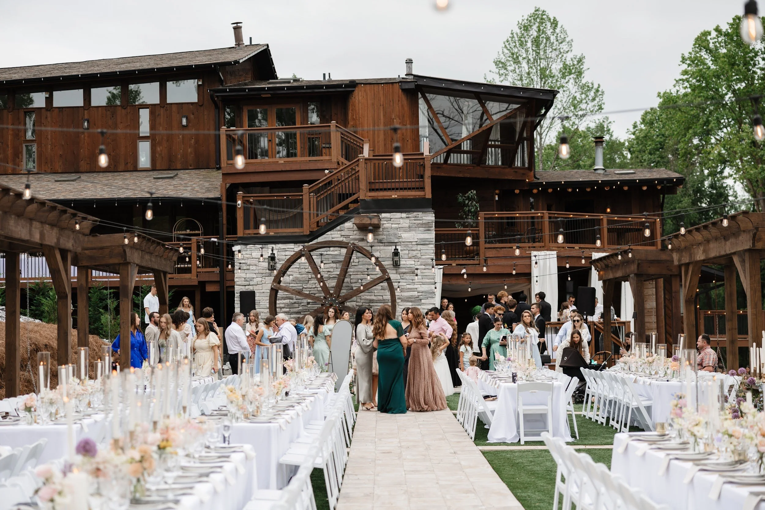 Nature does the decorating. The lake, forest, and water wheel create a backdrop that doesn't need elaborate (expensive) décor to look beautiful.